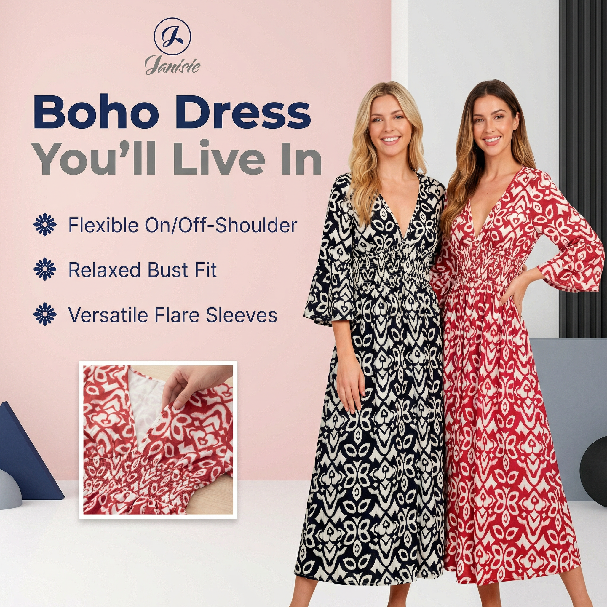 Wrinkle-Camouflaging Print: Intricate boho patterns on breathable fabric hide wrinkles instantly—no ironing required.